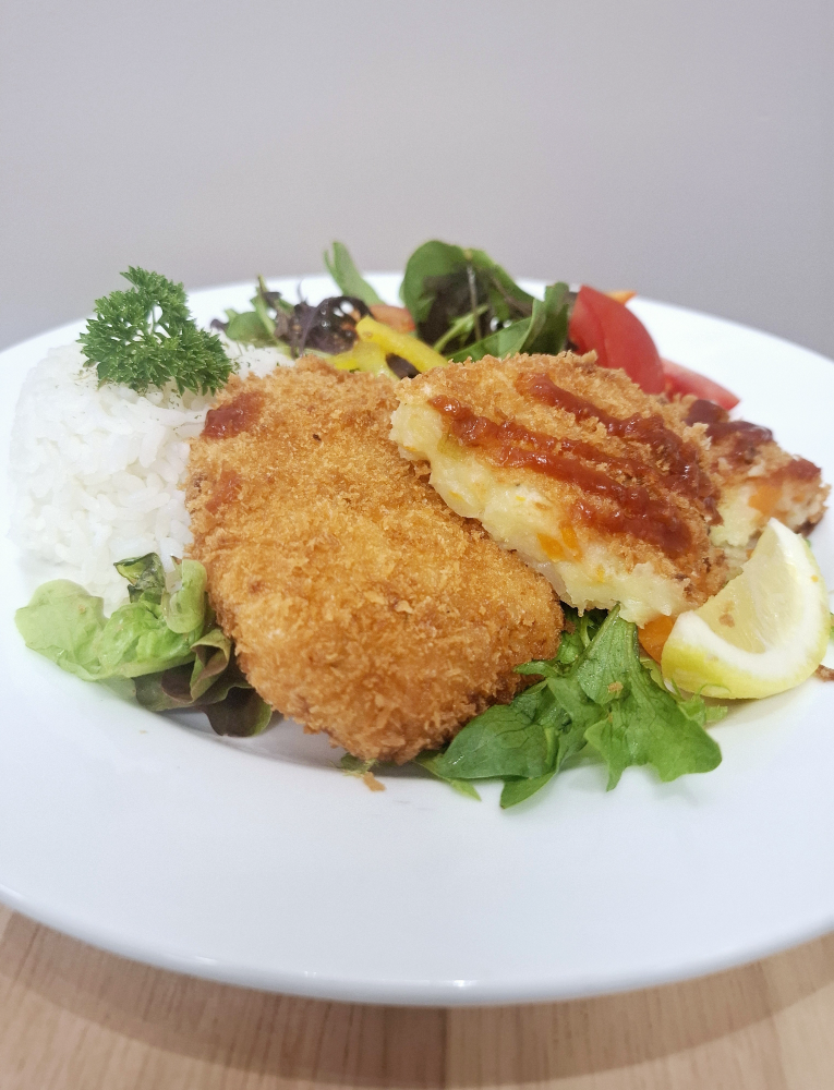 Our Japanese menu includes Sushi Box, Japanese style curry on Rice, Karaage meal (with Chips OR Rice), Japanese Croquette meal (with Chips OR Rice) and Chicken Katsu Don.